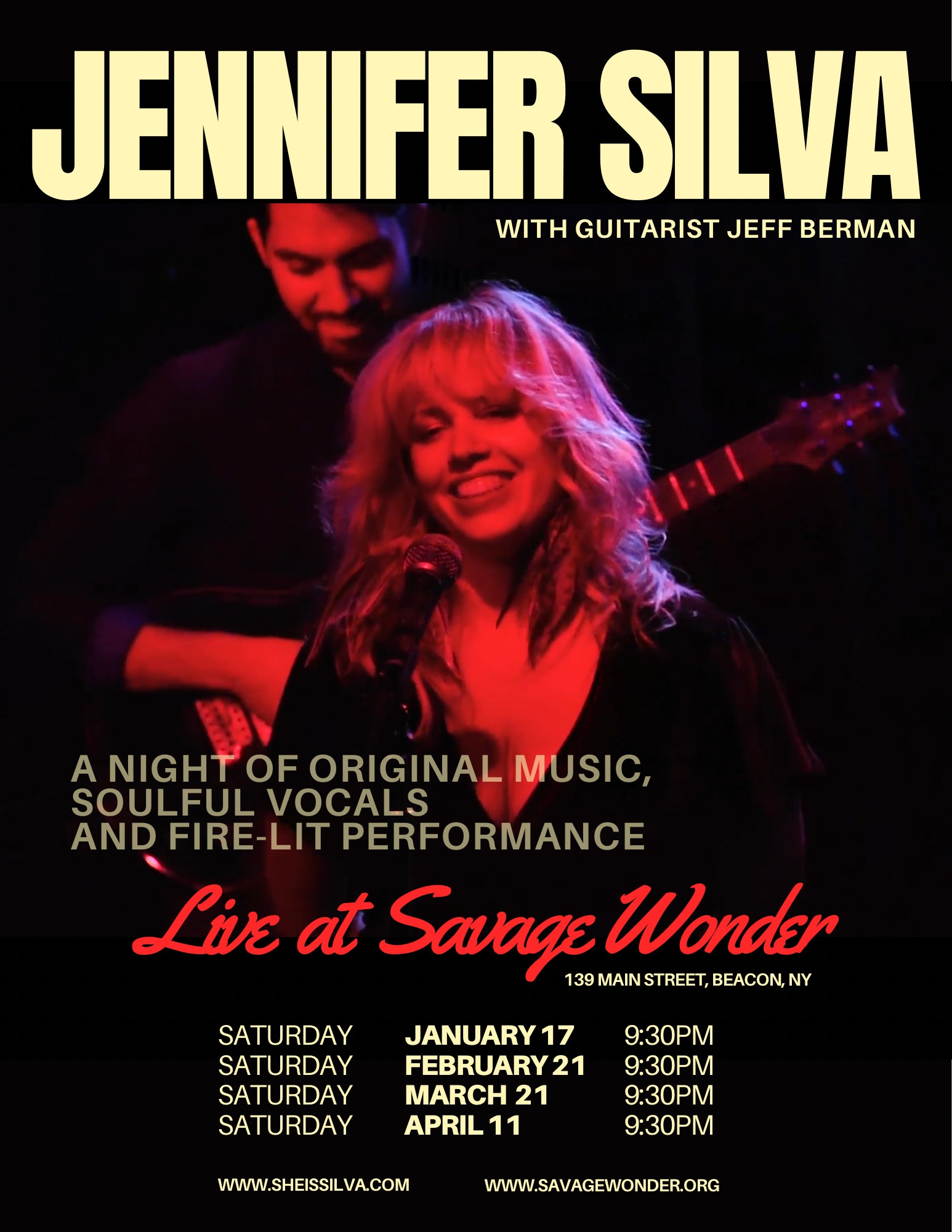 The ParlorSavage Wonder presents songwriter, vocalist and recording artist, Jennifer Silva. It's a night of original music, soulful vocals, and fire-lit performance with guitarist Jeff Berman. Silva will perform a selection…